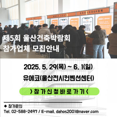 제5회 울산건축박람회 참가업체 모집이 시작되었습니다.